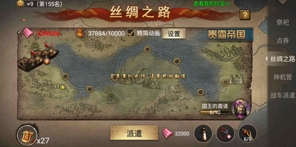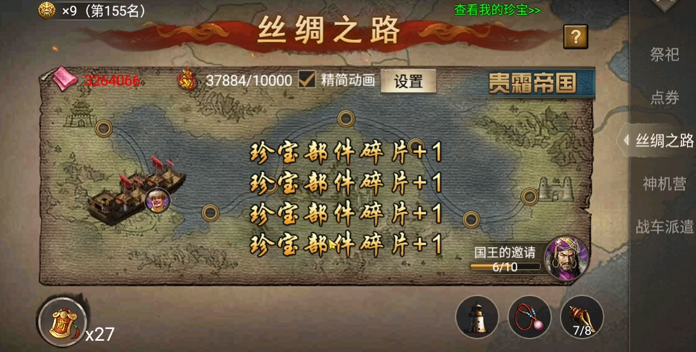 参与者能够获取的奖励是多样且实用的,涵盖了游戏内多种关键养成资源。该活动以掷骰子走棋盘的经典形式展开,玩家通过控制醒狮前进的步数,停留或经过不同的格子来领取对应奖励。作为一项限时活动,其提供的奖项是提升战力的重要途径。资源类奖励通常包括大量的经验值、用于装备强化的锦囊、发展科技所需的丝绸、锻造战车的关键材料陨铁,以及用于提升武将能力的兵书。具体到满级玩家,一轮下来有机会获得如50个锦囊、5000单位丝绸、上千万经验、8个单位陨铁和一本4级兵书等丰厚回报,这些基础资源对于角色的成长与军队建设有着直接的助力。